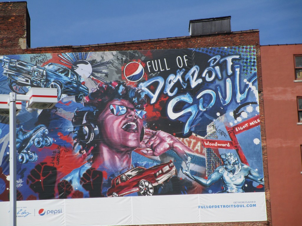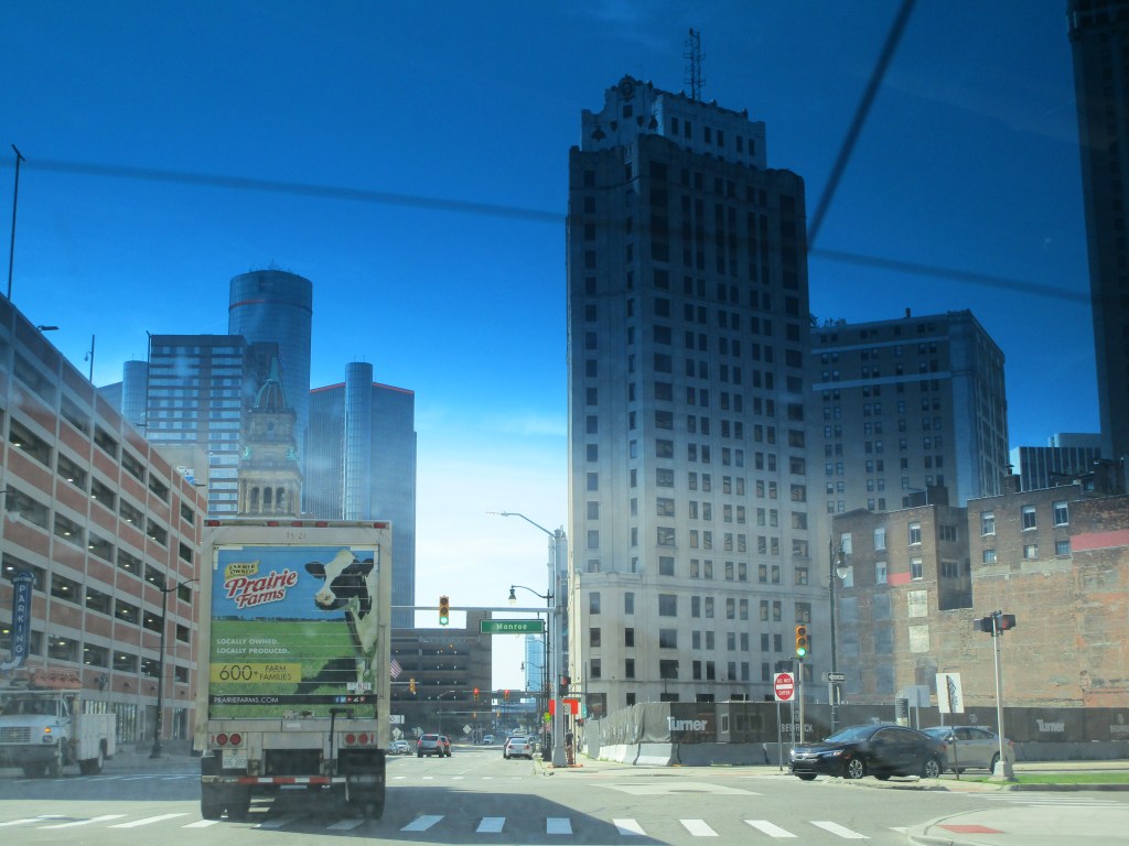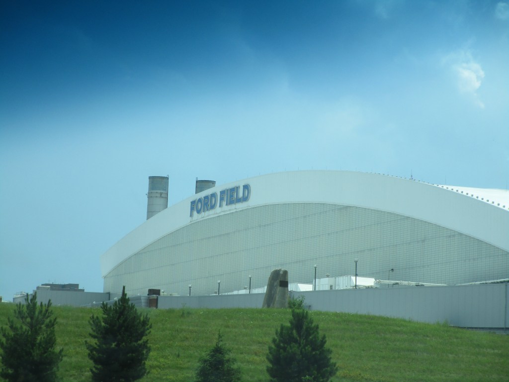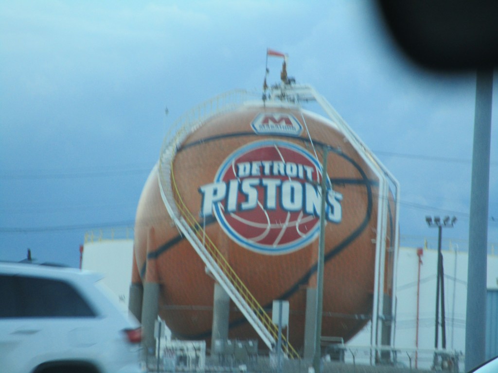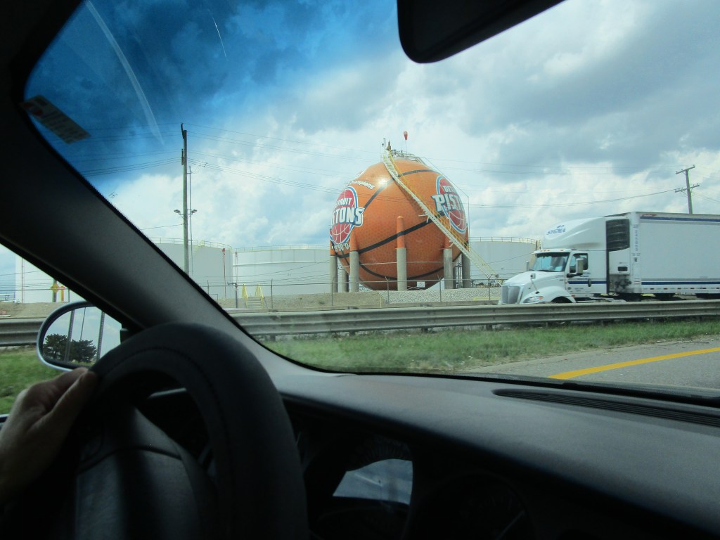 I’m throwing in an extra Pistons picture. One more second and that semi would have blocked my view. I got a lot of good pictures, but missed a few good ones too because the car is moving and buildings and vehicles get in your way. There’s lots to see in Detroit.