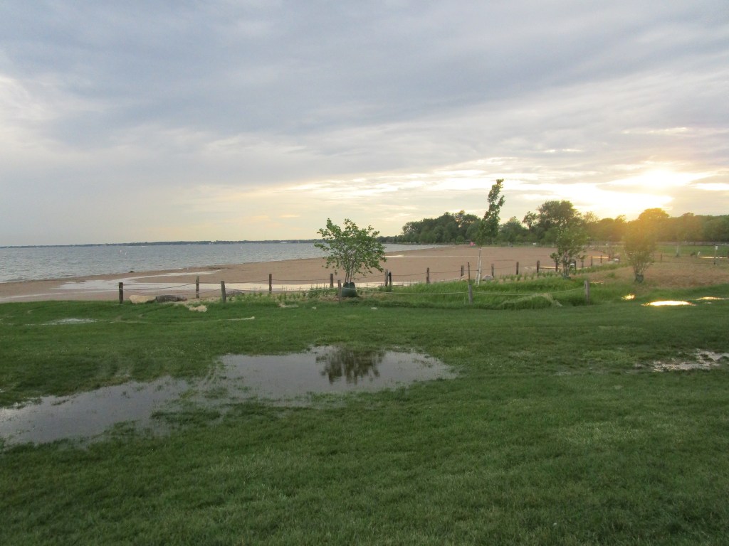 Detroit and surrounding areas had just gotten lots of rain. The beach (Lake St. Claire) isn’t usually this wet I imagine. We were there on a rainy Tuesday, so there wasn’t a lot of people.