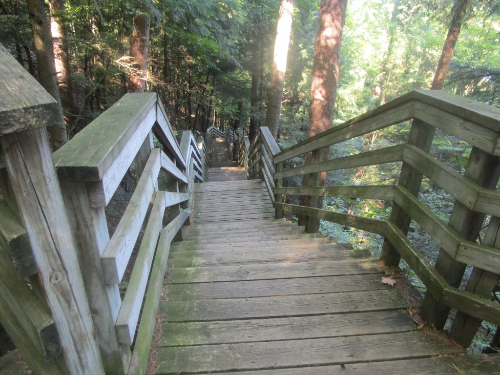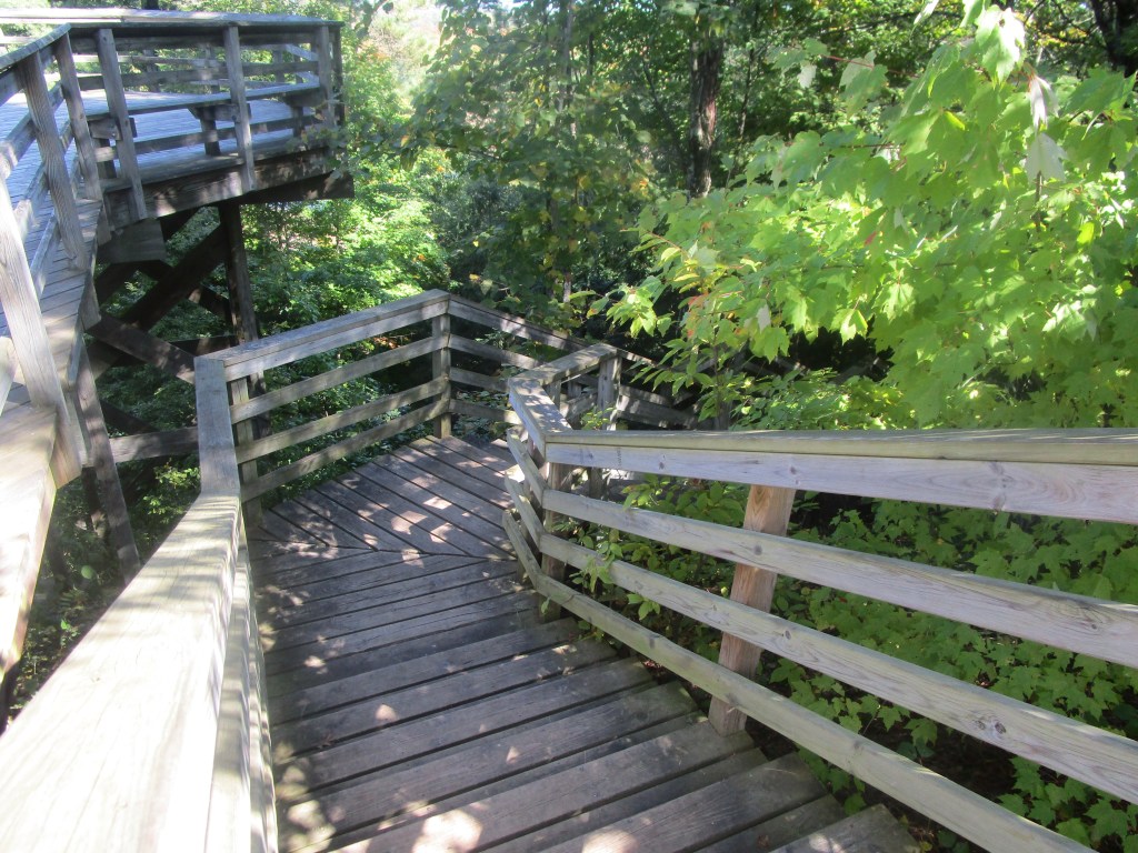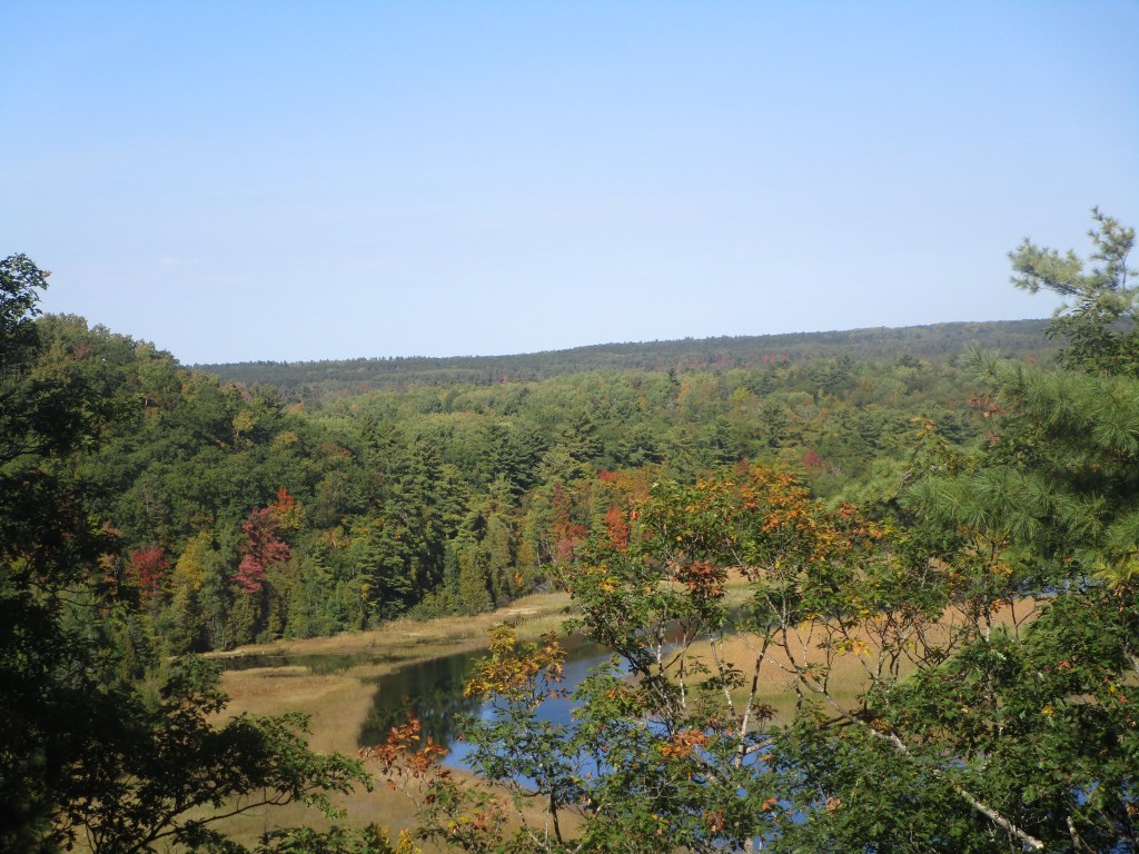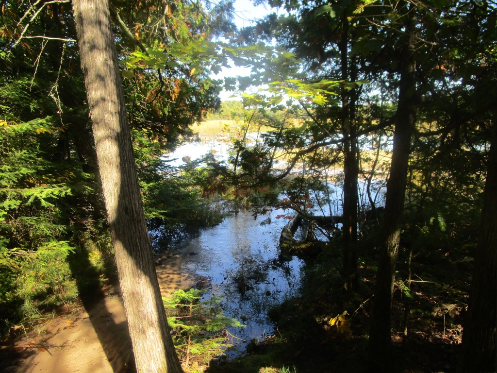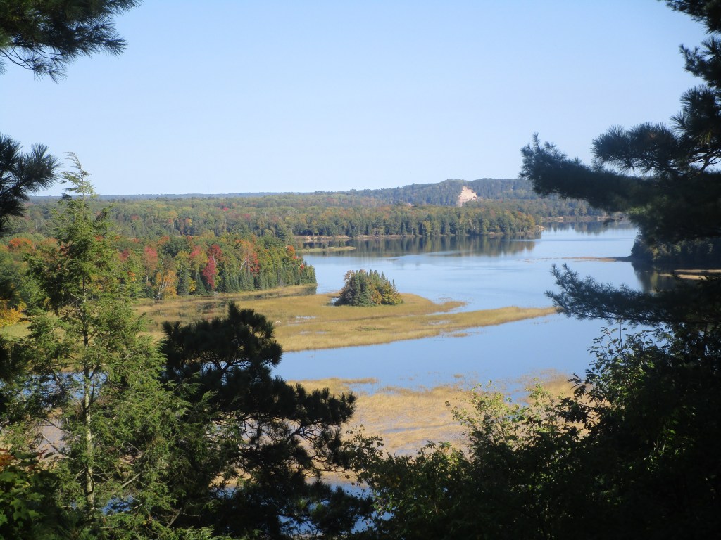 This is what you see from the viewing deck when you come back up those steps (or before you go down.) We were there the first week in October. The colors were just starting to pop out here, but other parts of the northeast mitten, the colors were in full bloom. You just never know when the colors will peak.