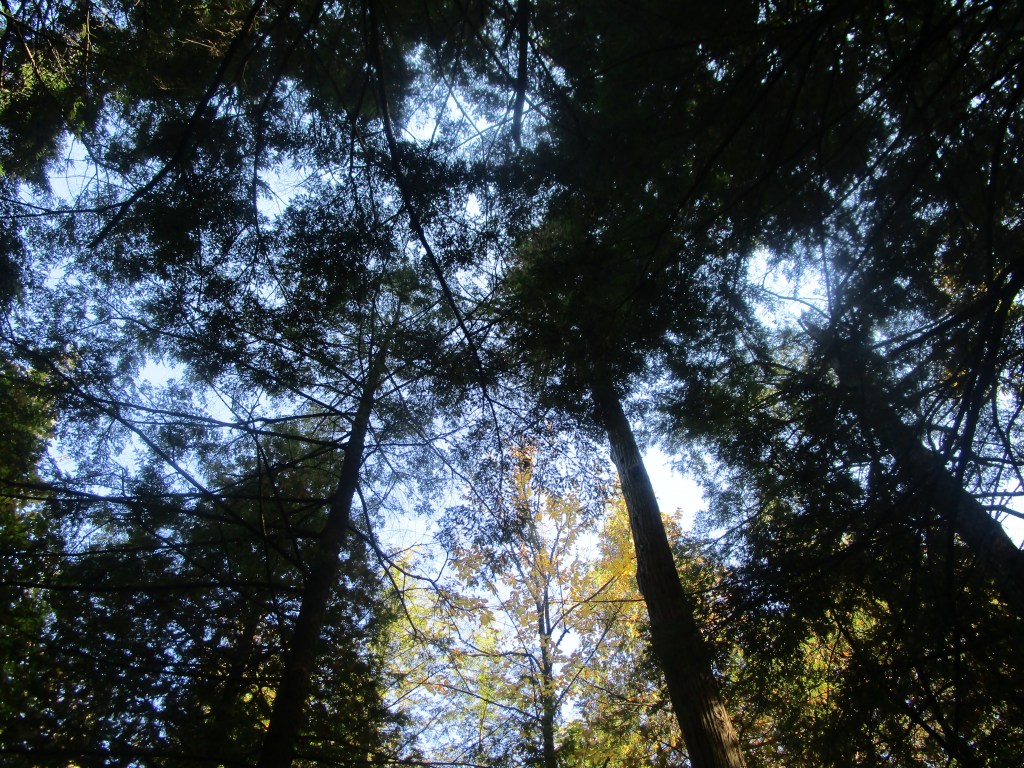 In this one section of the river bank, the pines were narrow and pointy.