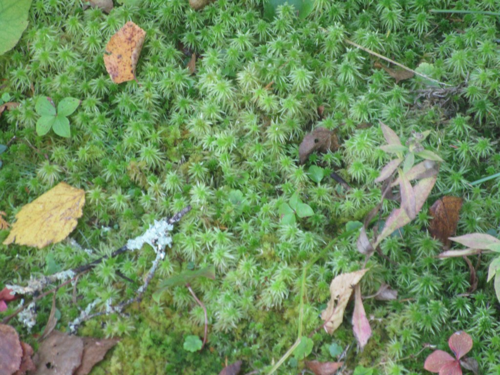 There were several trees like this growing all by their self on a stump.